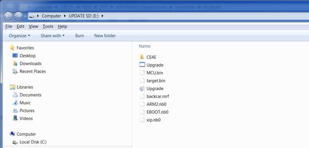 update folder. Place the update files into the ROOT directory of a blank MicroSD card. There should be no folders